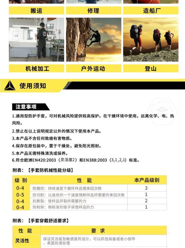 • 產(chǎn)品描述:高空戶外手套,超細(xì)聚酰胺纖維材質(zhì),掌面掌背重.點(diǎn)卑微加強(qiáng)型PVC耐磨防護(hù),腕部魔術(shù)貼可調(diào)節(jié)袖口,網(wǎng)狀透氣吸汗處理,亮黃醒目警示色,佩戴舒.適安.全。 適合于高空攀爬作業(yè)以及繩索作業(yè)。
