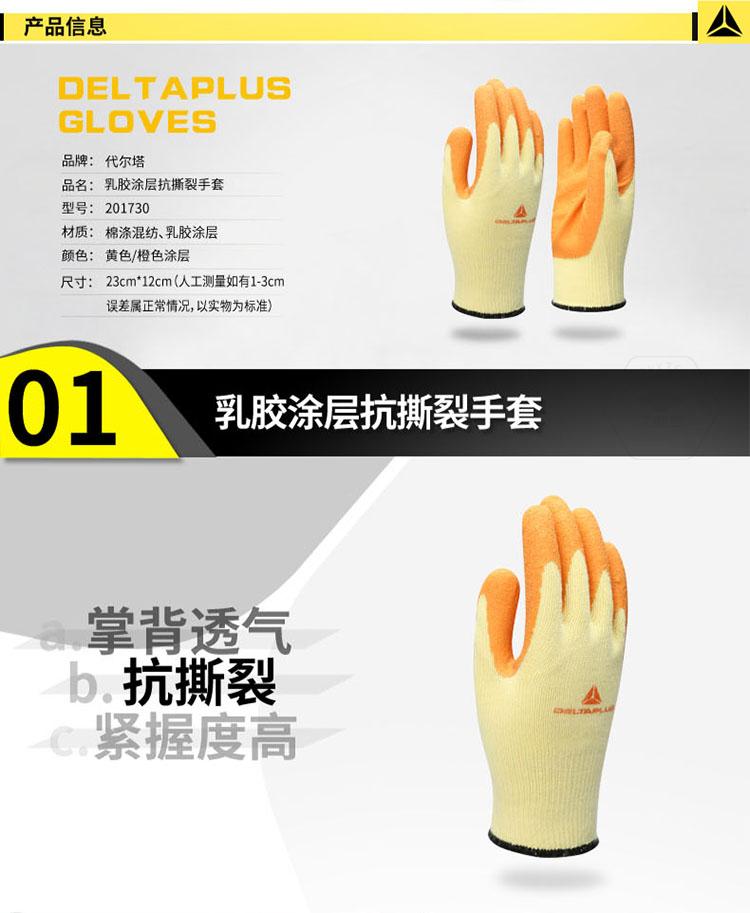 商品名稱:代爾塔 勞保手套 工作手套 透氣 乳膠涂層防撕裂 9# 201730 橙色 L號(一副)