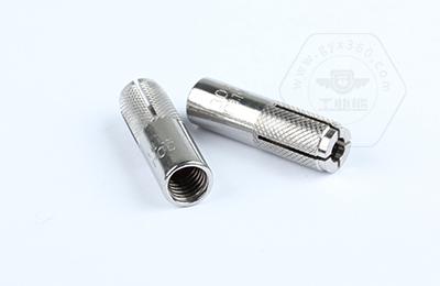 1、內(nèi)部有小鋼柱,尾部有內(nèi)絲扣,釘入墻孔后,將絲桿擰進(jìn),則小鋼柱被不斷擠壓,頭部爆裂開來和墻孔產(chǎn)生摩擦力,從而固定。