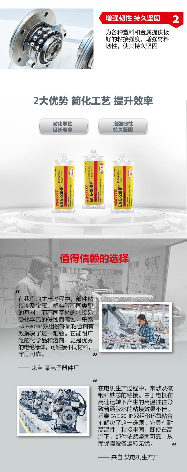 樂泰EA E-20HP雙組份環氧粘合劑是一款雙組份、通用型工業級環氧樹脂膠粘劑。樂泰EA E-20HP雙組份環氧粘合劑具備高抗剝離性、高剪切強度、耐化學性和增強韌性,可為多種塑料和金屬提供出色粘接強度。樂泰EA E-20HP雙組份環氧粘合劑適用于金屬、光纖、陶瓷等材料,是通用工業裝配的理想選擇。